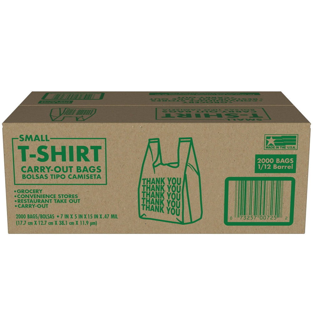 Small T-Shirt Carry-Out Bags, 7" x 5" x 15" (2000 ct.)