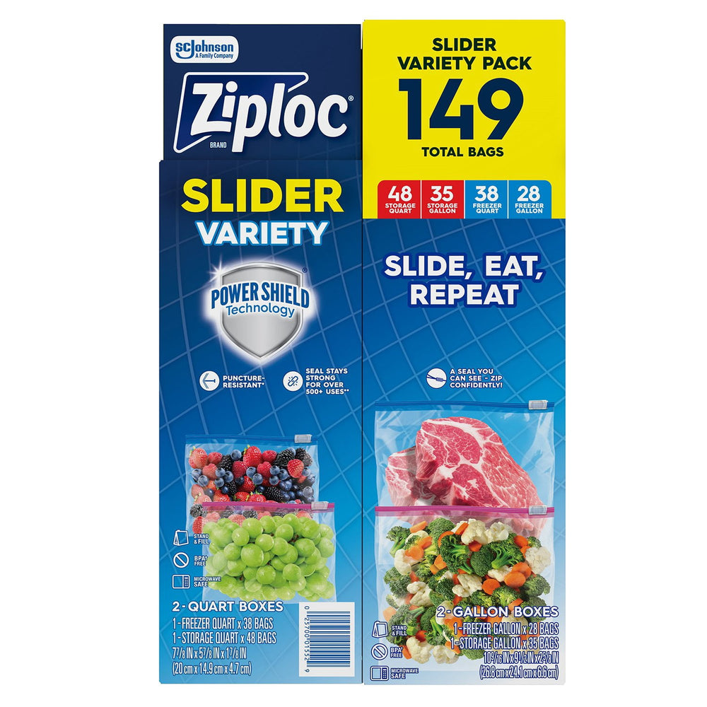Ziploc Gallon Quart Freezer and Storage Slider Bags Variety Pack, Power Shield Technology, 149 ct.