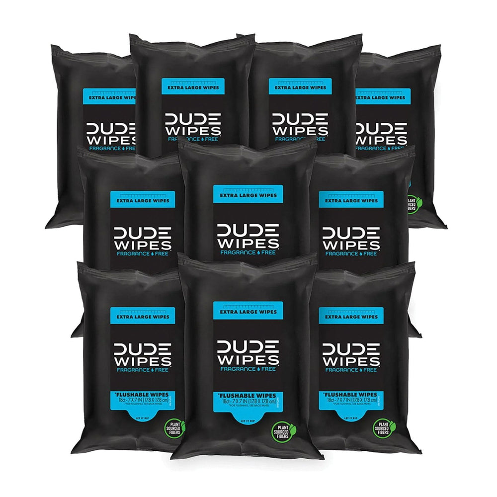 DUDE WIPES XL Flushable Wipes, Fragrance Free, 10 ct., 180 wipes