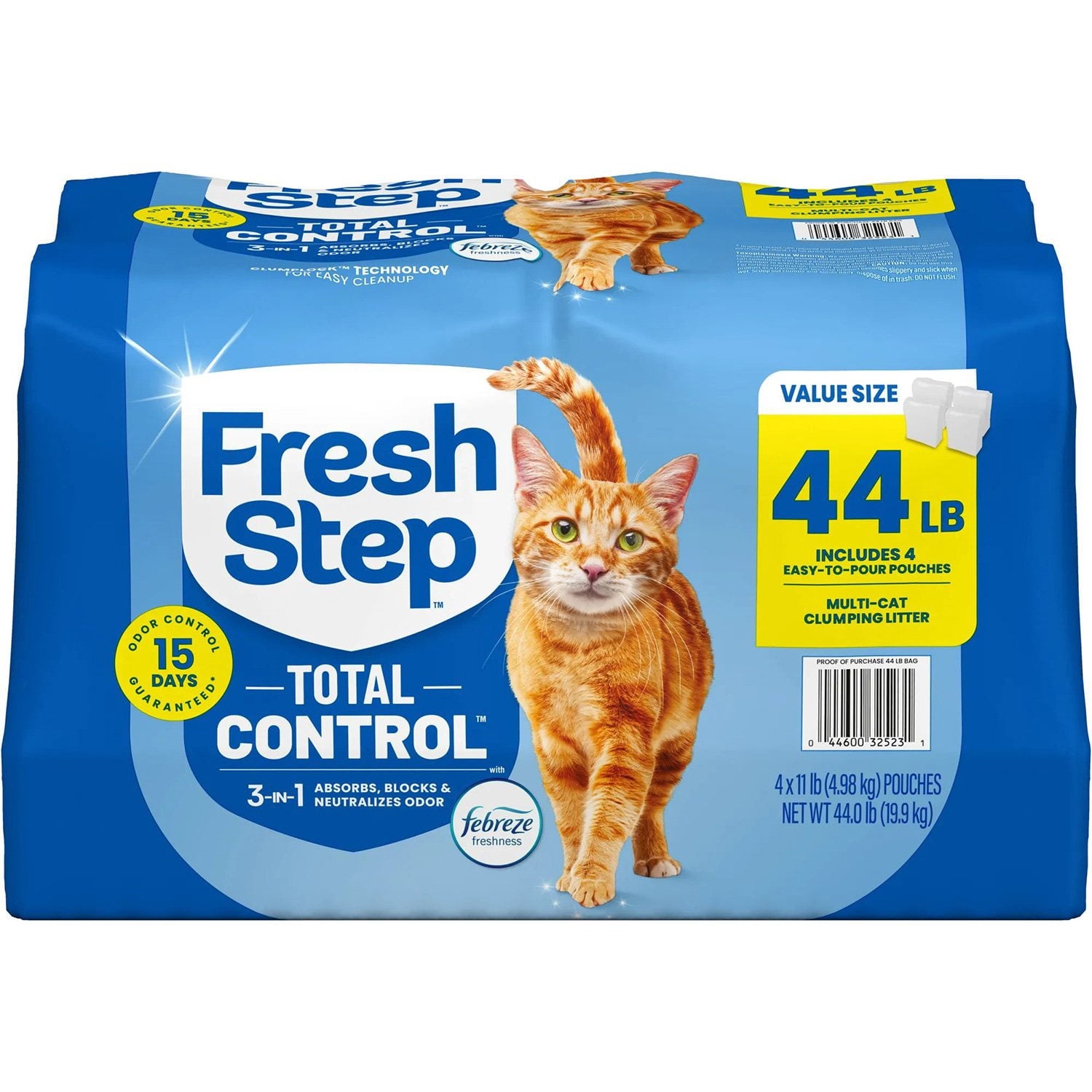 - 44 lb. Fresh Step Total Control Clumping Litter includes four 11 lb. pouches