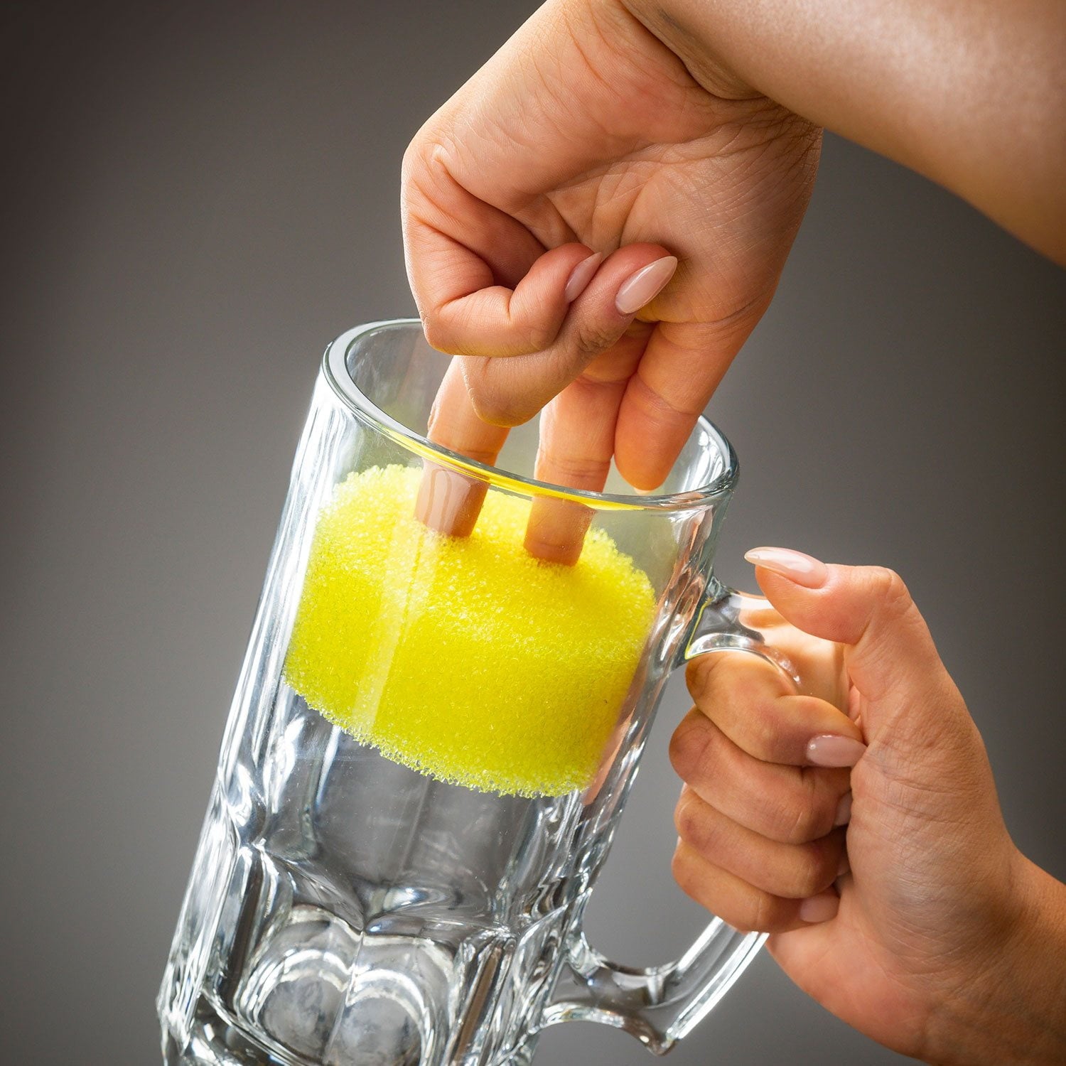 Scrub Daddy's smiley face is functional. The eyes provide a secure grip for your fingers, allowing a 360-degree reach, which is particularly useful for cleaning tall glasses. The mouth is designed to clean both sides of your utensils at the same time, making your cleaning tasks more efficient.