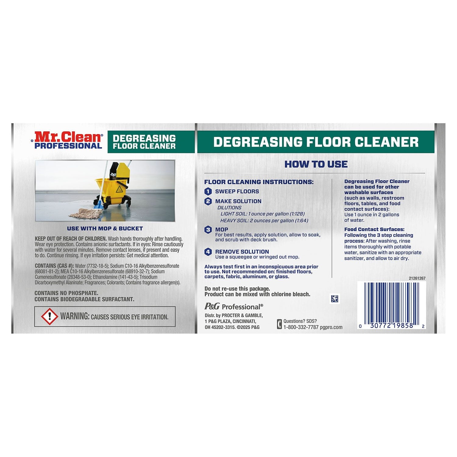 In addition to its primary use on floors, Mr. Clean Degreasing Floor Cleaner can be used on a variety of washable, non-finished surfaces, including walls, restroom floors, tables, and more. It is also suitable for use on food-contact surfaces** making it a great choice for restaurants and food service floor and surface cleaning.