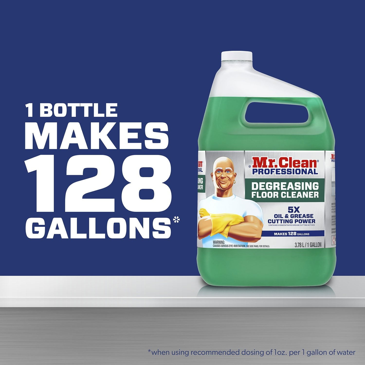 Mr. Clean Professional Degreasing Floor Cleaner cleans tough grease and grime in high-traffic areas such as commercial kitchens, auto shops, warehouses, workshops, and anywhere else with concrete, tile, ceramic or vinyl floor. With its exceptional 5X Oil & Grease Cutting Power*, this powerful floor cleaning solution makes quick work of even the most challenging cleaning tasks.