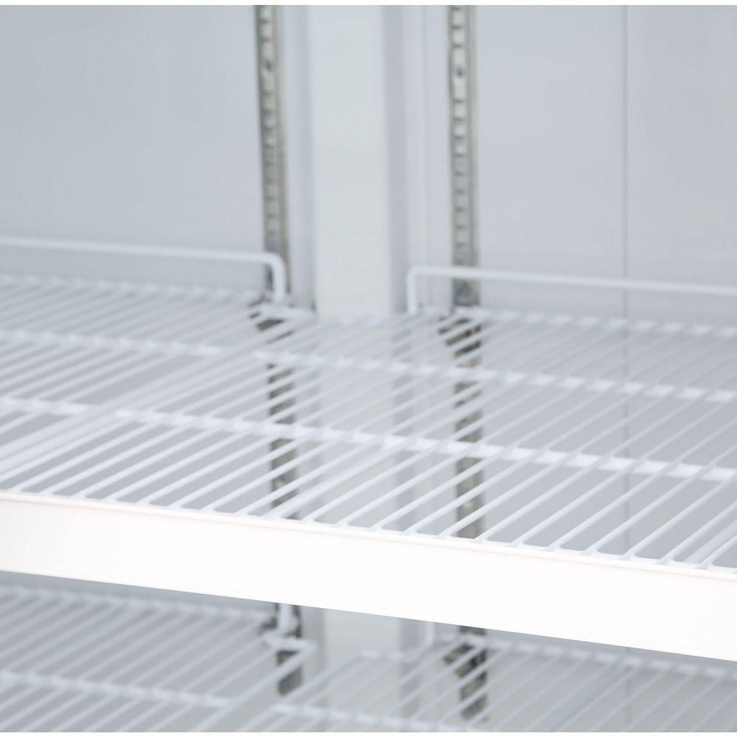 Adjustable temperature range from 33 to 41 degrees F (1 to 5 degrees C) is precisely maintained by the digital controller with LED displaySliding doors are self-closing and include a magnetic gasket for a tight and efficient sealDouble pane heated glass anti-fog doors enhance energy efficiency by preventing heat transfer and minimize condensationBottom mounted compressor system is efficient and easily accessed for service and cleaningEco friendly R290 refrigerant with an Ozone Depletion Potential of 0Energy efficient foamed-in-place polyurethane insulation(8) Eight heavy-duty polyethylene coated wire shelves are held in place with stainless steel shelf clips and pilastersPre-programmed automatic defrost cycle provides trouble-free storage conditions(PDF)