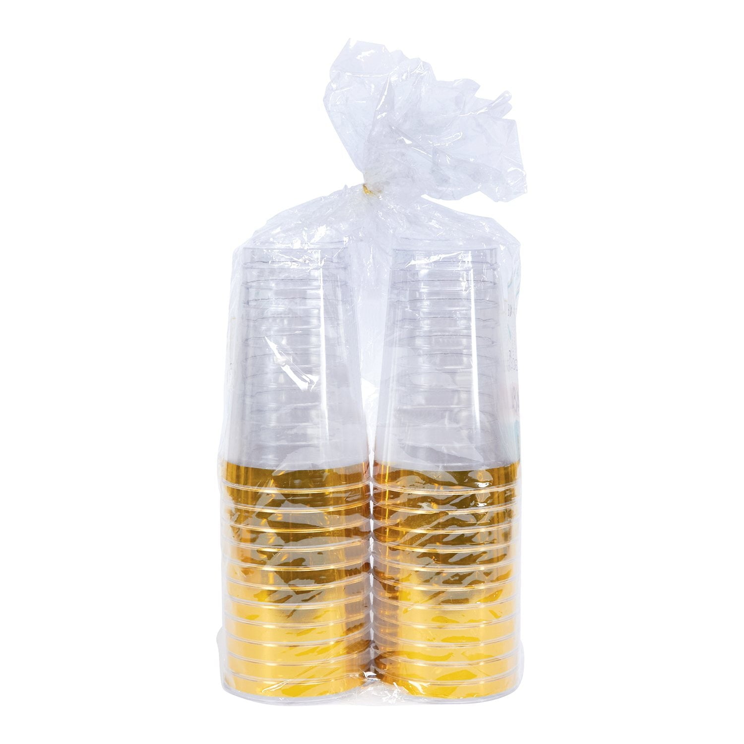 • Premium-quality, shatter-resistant clear disposable plastic cup with gold rim