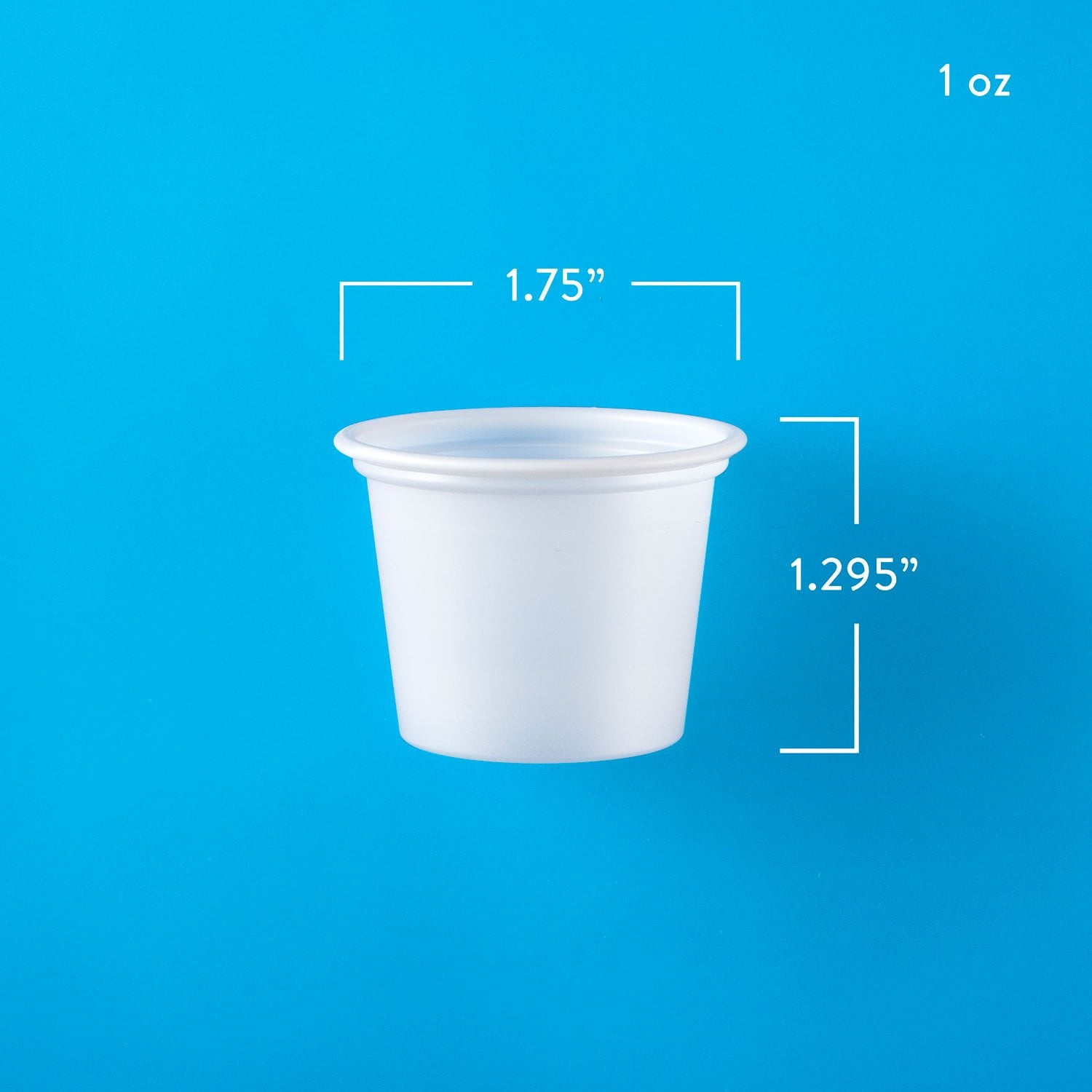 1 fl. oz. portion cupsIdeal for food serviceDisposableQuantity: 2500 ct.Dimensions: 1.75" W x 1.295" H