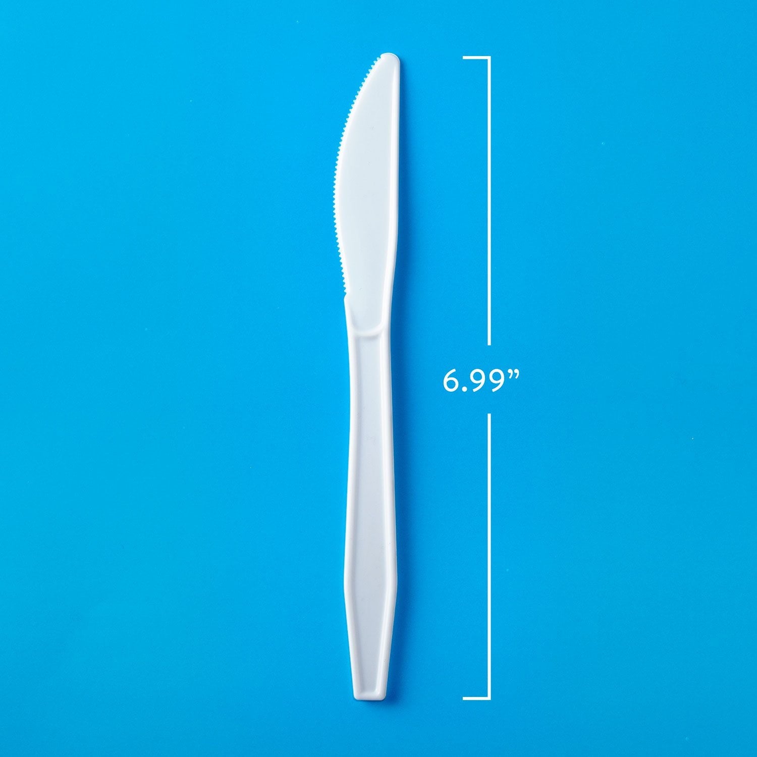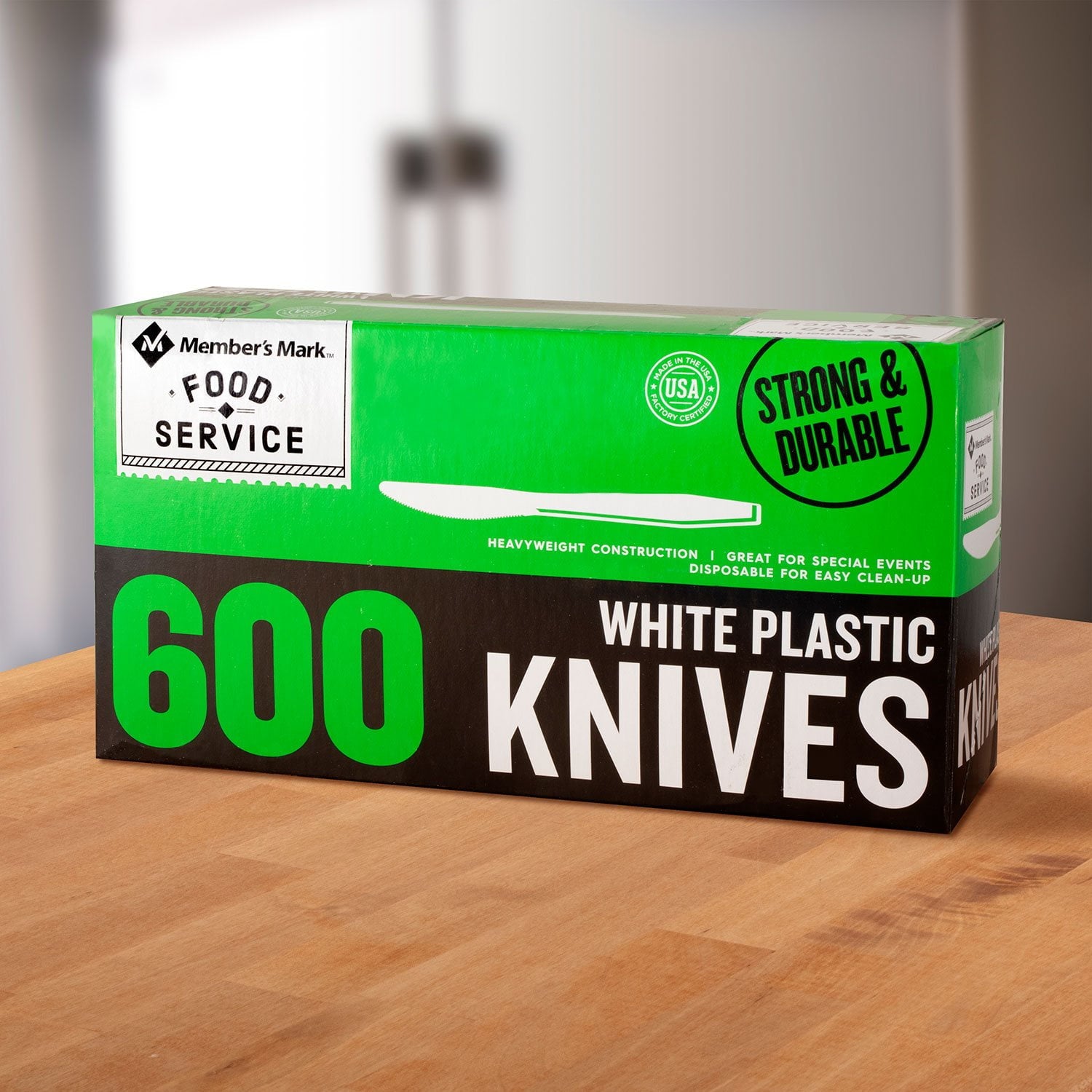 Member's Mark™ Plastic Knives, Heavyweight, White (600 ct.) are strong, reliable knives that you can count on at home, in the office or for any business that serves food. This 600-pack of heavy-duty plastic silverware will keep you stocked up and ready to serve hundreds of meals. Be sure to look for Member's Mark heavyweight plastic spoons and forks as well.