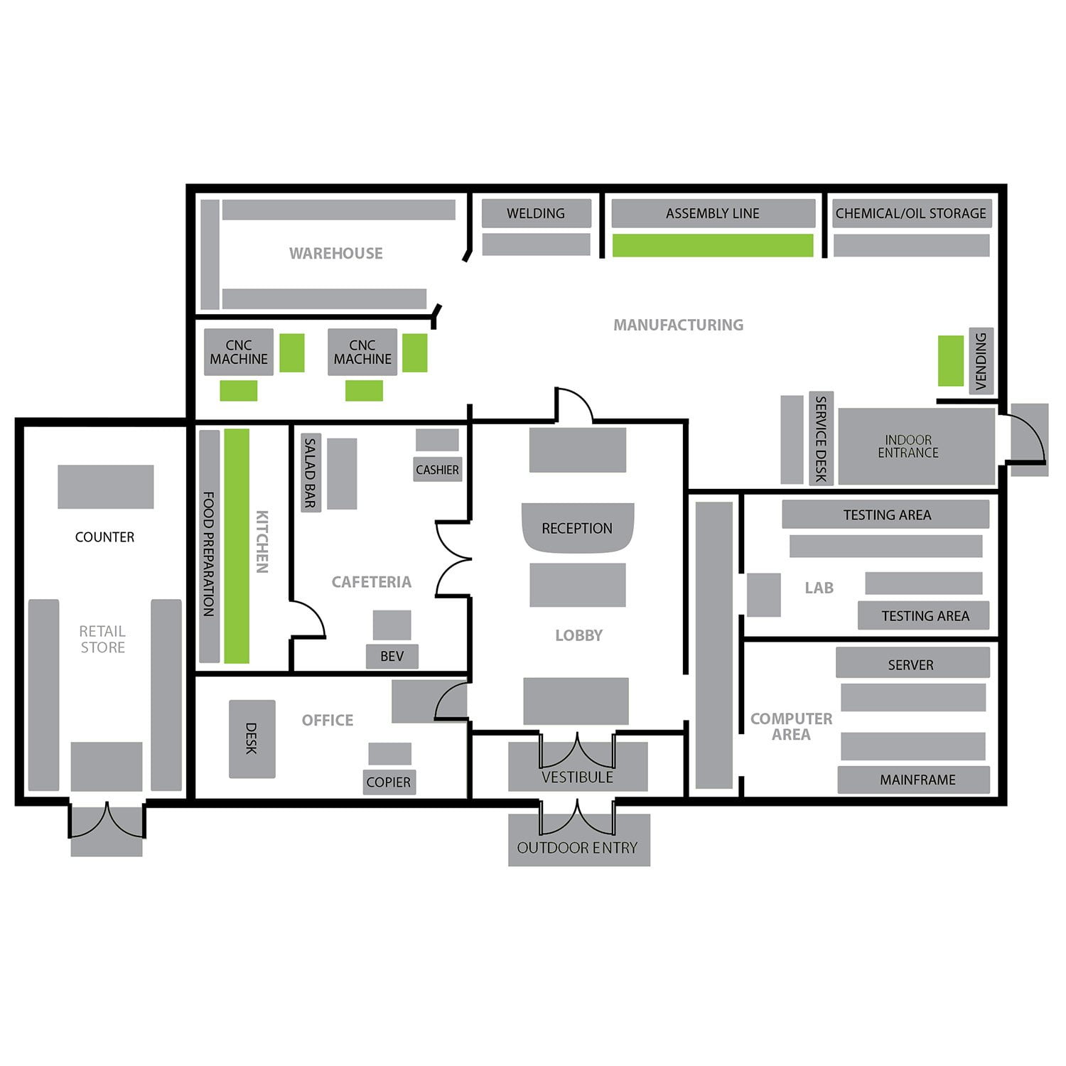 - For wet areas with exposure to grease and oils t