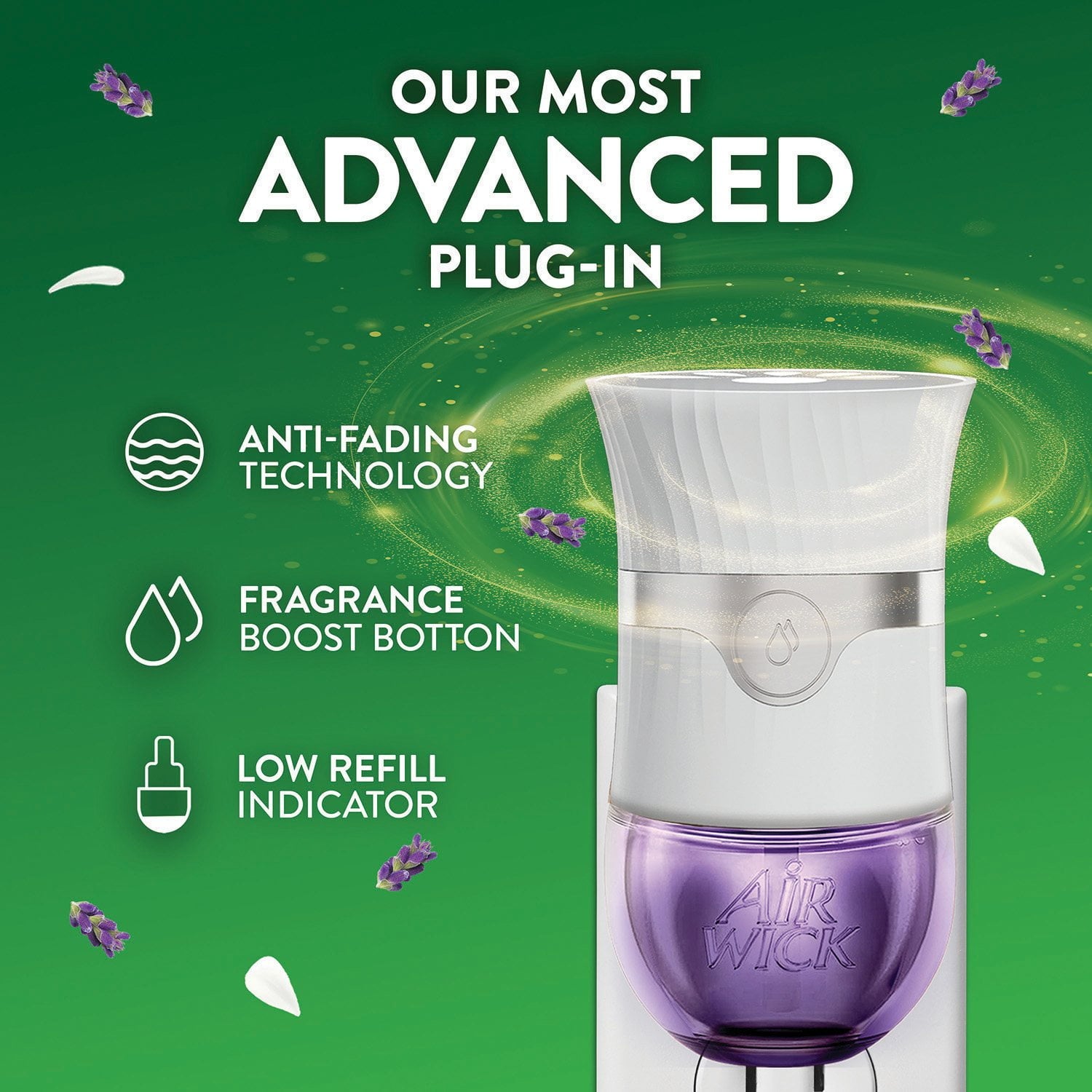 - Provides up to 80 days of continuous fragrance per refill on low setting