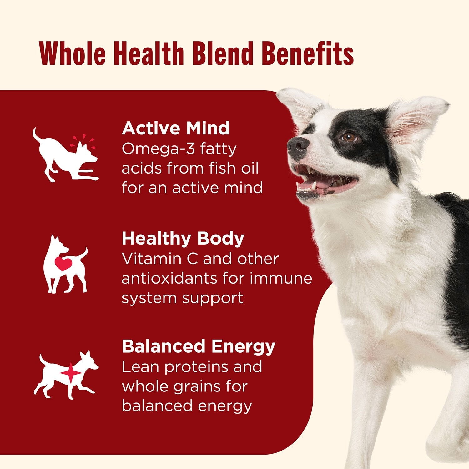 • Nutrish Whole Health Blend recipes are thoughtfully crafted to support a dog's active mind, healthy body and balanced energy