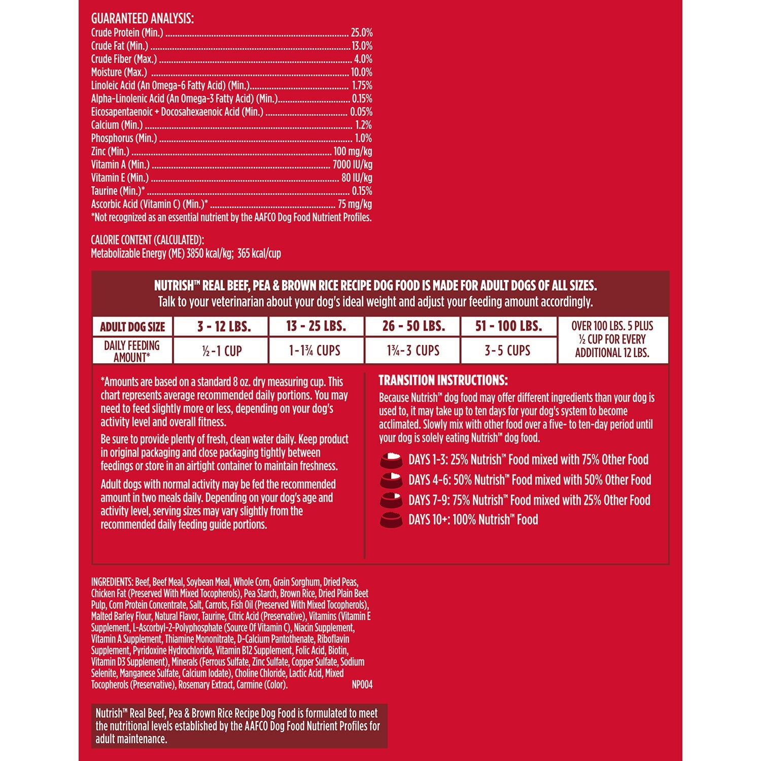 When you purchase Rachael Ray Nutrish Real Beef, Pea and Brown Rice Recipe Dog Food, you're not just feeding your pet well, you're also helping animals in need. A portion of the proceeds will be donated to The Rachael Ray Foundation™ to help animals in need. This product is formulated to meet the nutritional levels established by the AAFCO Dog Food Nutrient Profiles for adult maintenance.
