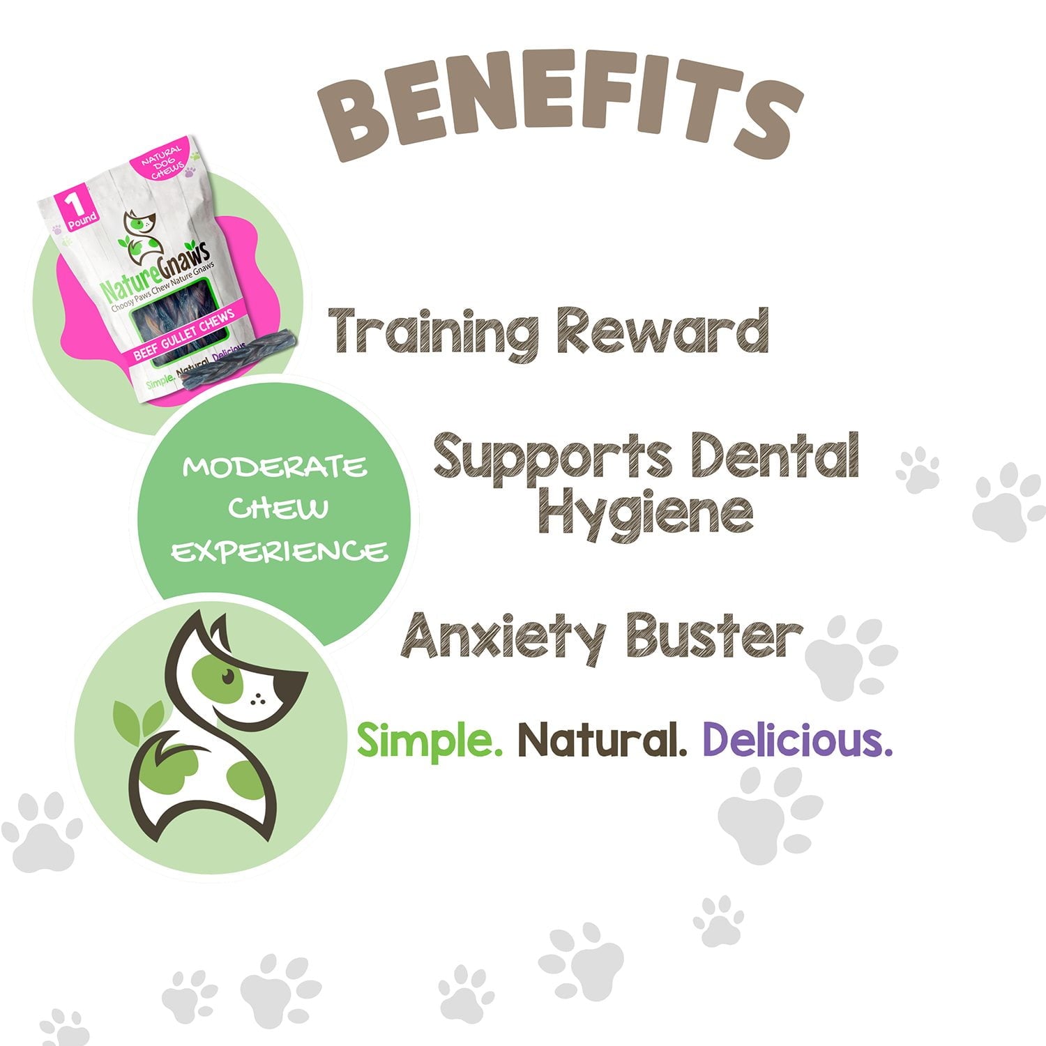 Beyond being a tasty treat, Nature Gnaws Beef Braids provide a natural stress-relieving activity while promoting dental hygiene support. Great to use as a reward during a training session or as a delicious snack!