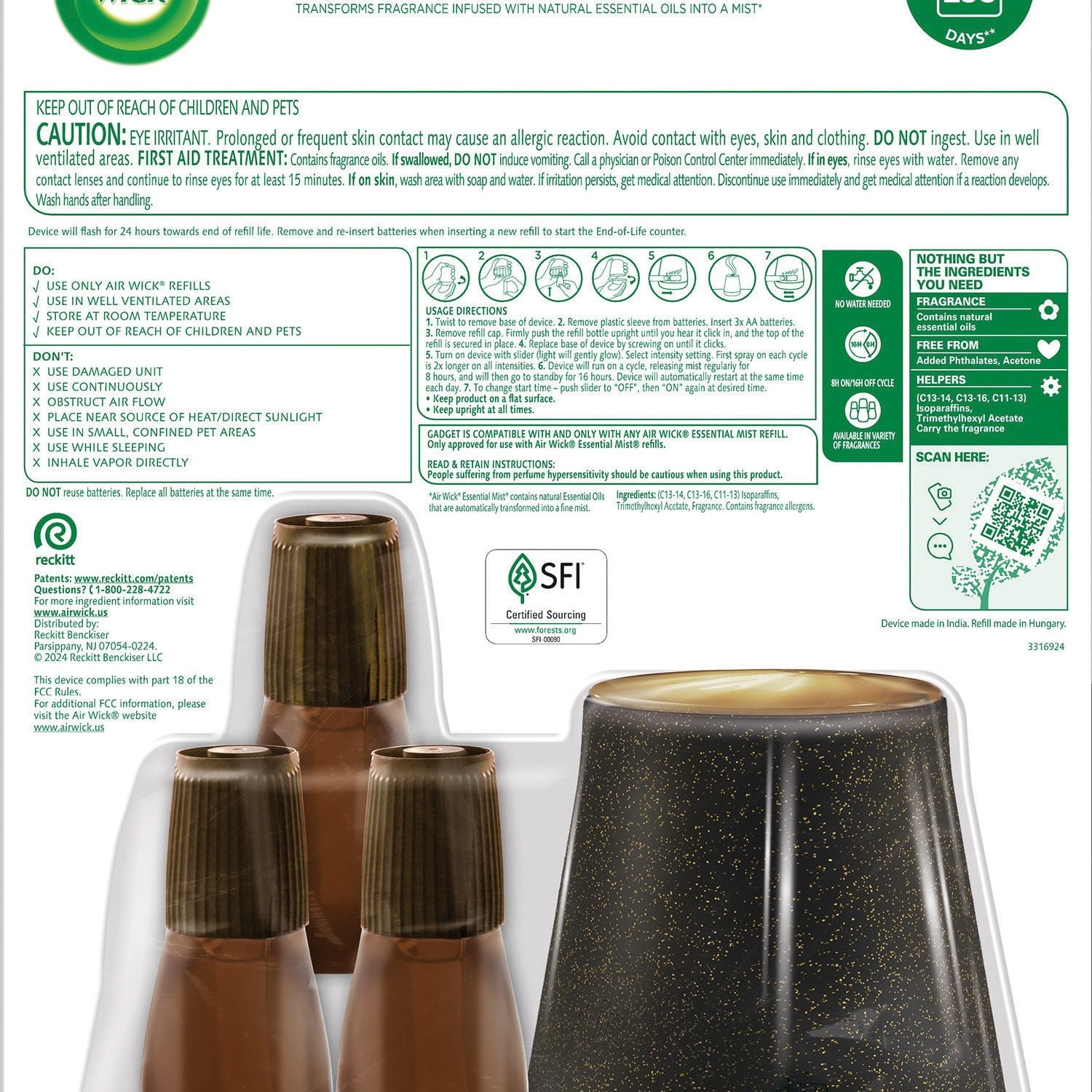 - Includes 1 diffuser, 3 refills, and 3 AA batteries