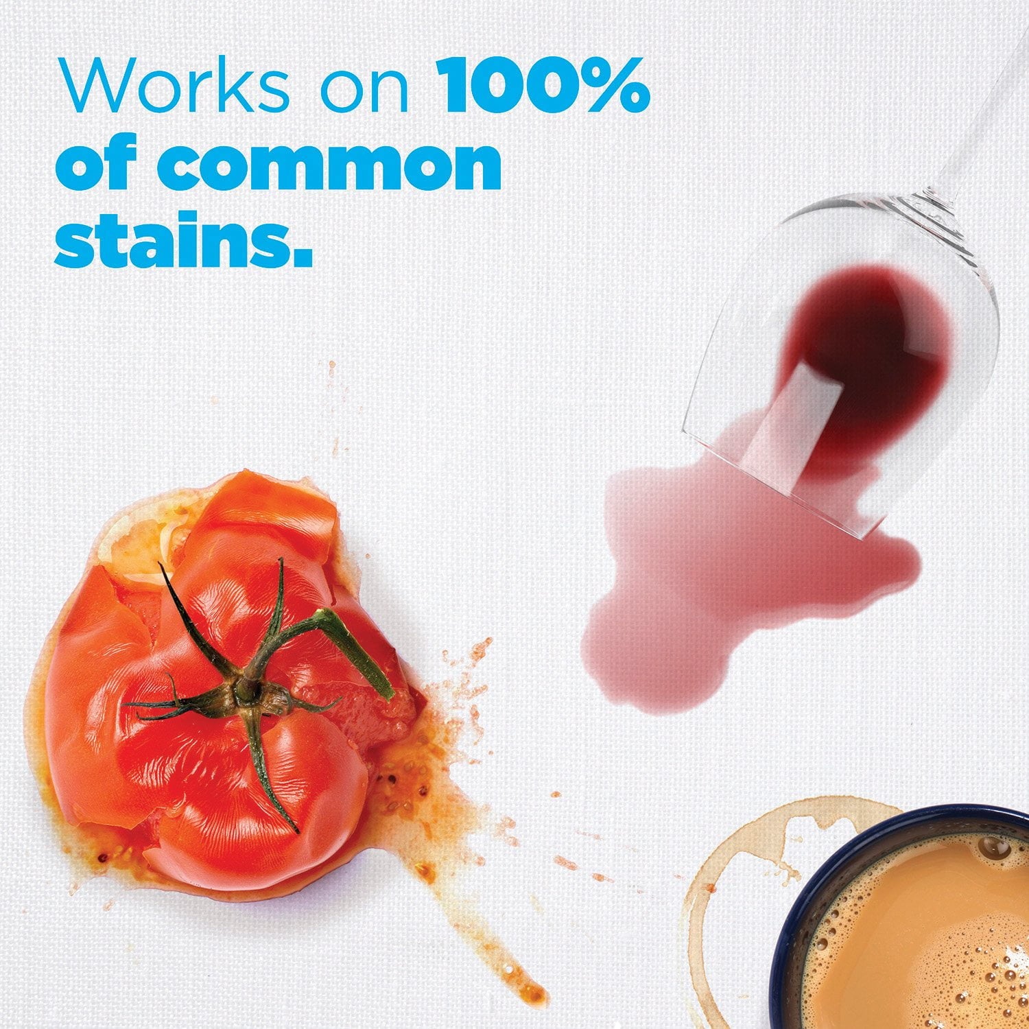 - Works on 100% of common stains, even in cold water