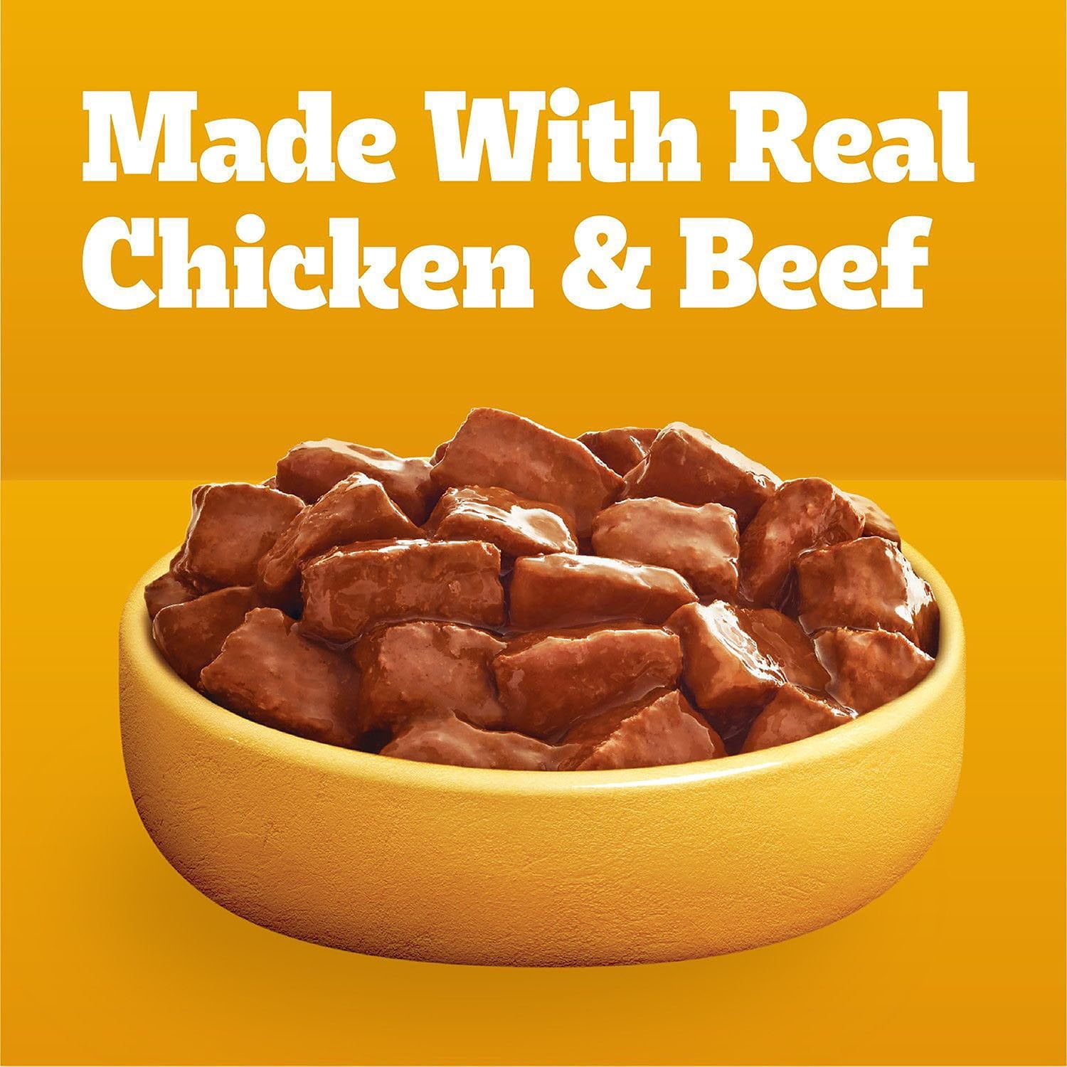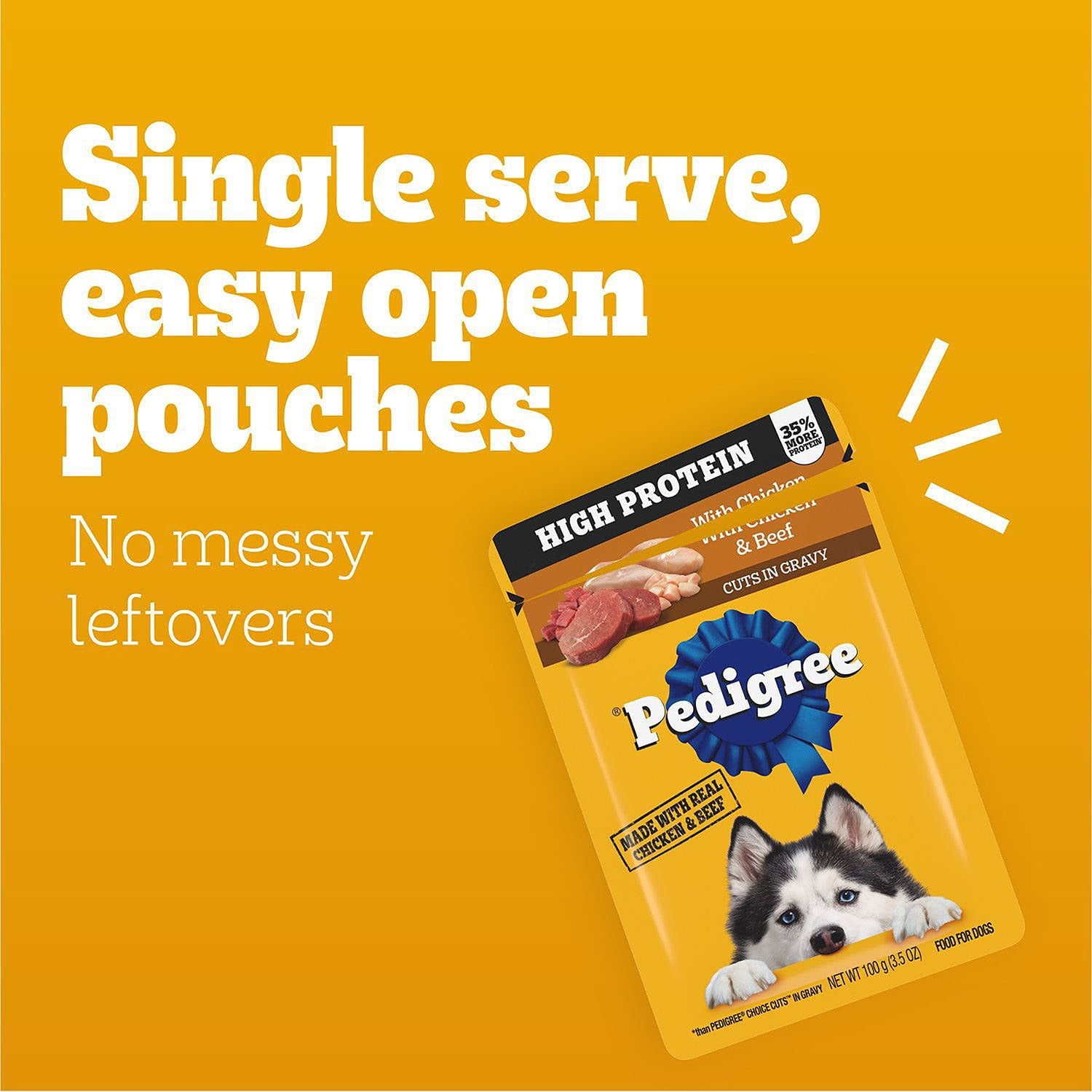 100% complete & balanced, nutritious soft wet food for dogsSoft, gourmet cuts made with real chicken or beef in irresistible gravy dogs loveMade in the USA with the world's finest ingredientsPerfect for adult dogs of all sizesMix with their favorite Pedigree dry Kibble for added flavor