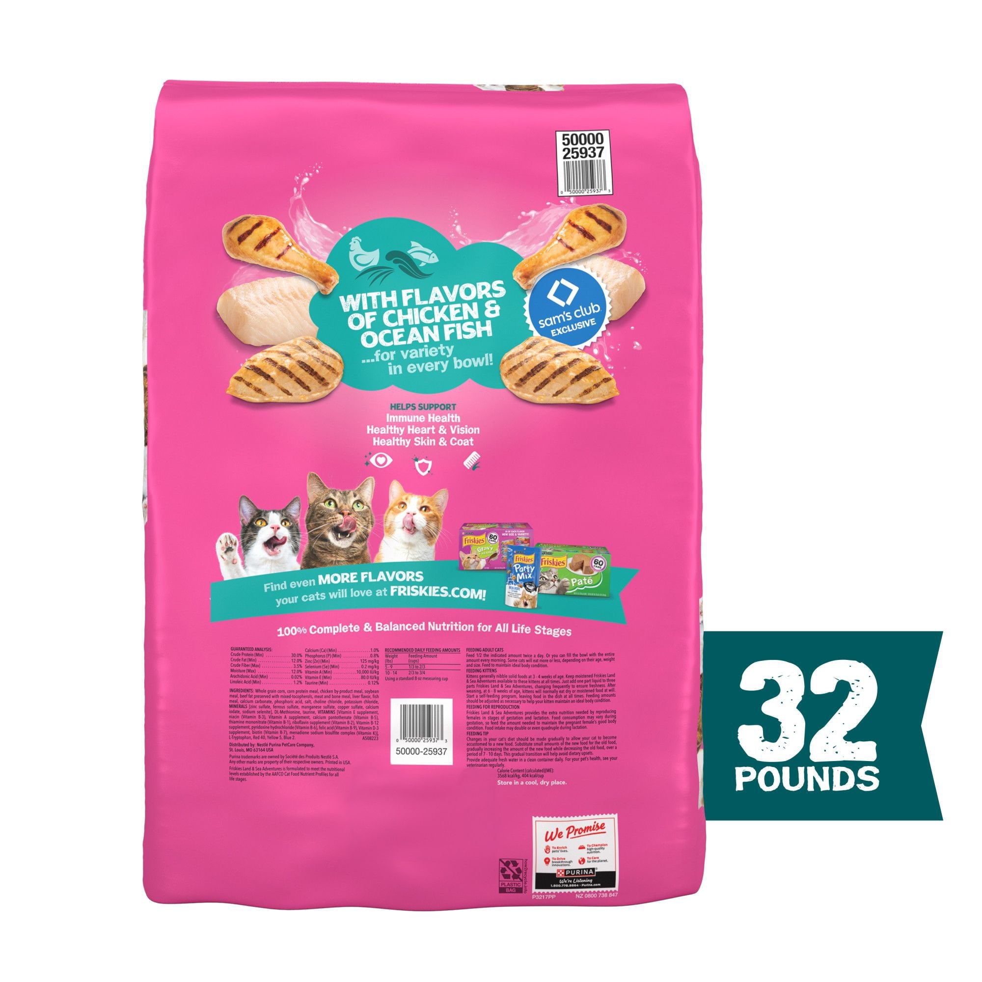 Product Description: Friskies Land & Sea Adventures, Chickn and Ocean Fish Flavored, Adult Dry Cat Food, 32 lbs.