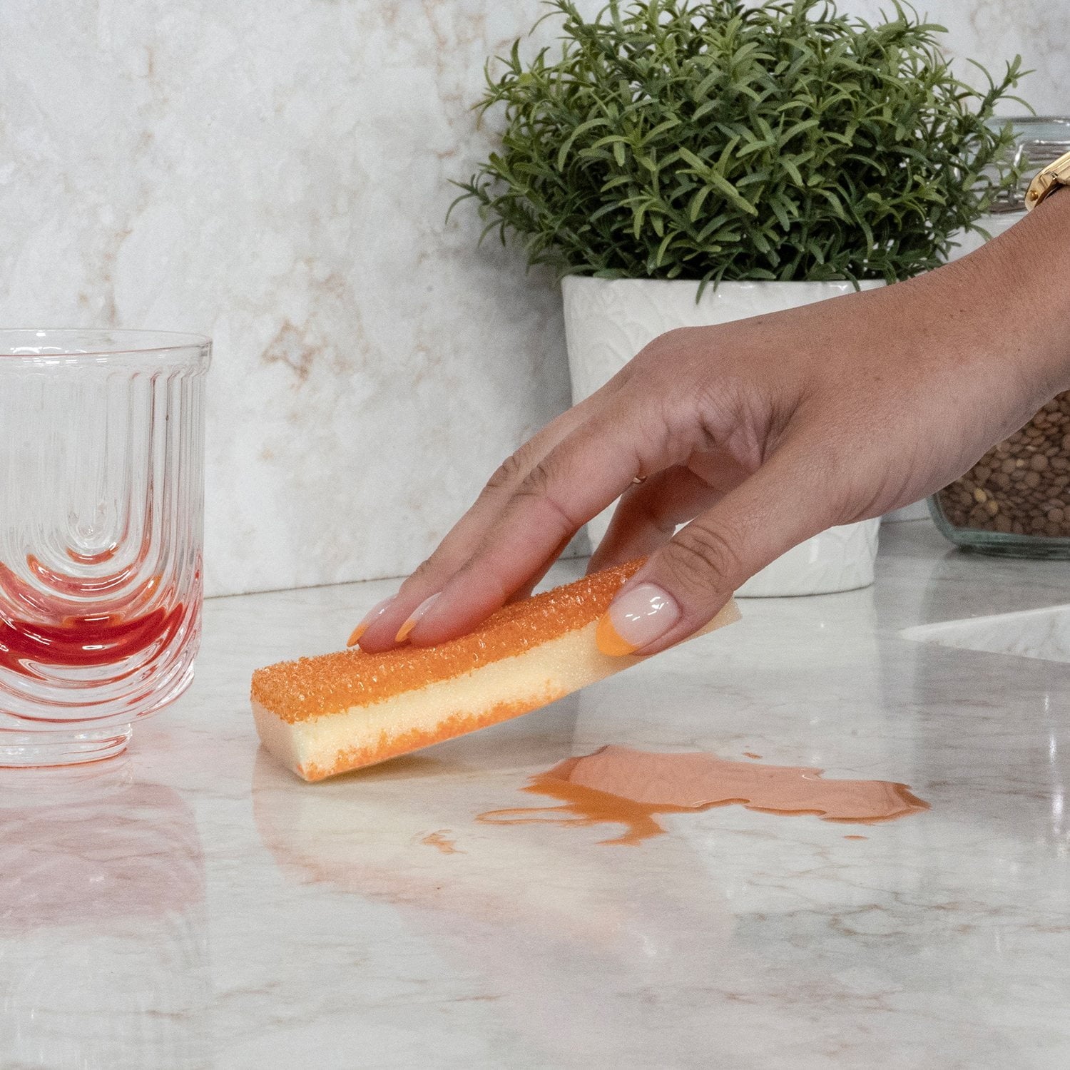 - Scratch-free and safe to use on over 25 surfaces, including non-stick cookware, stainless steel, and glass