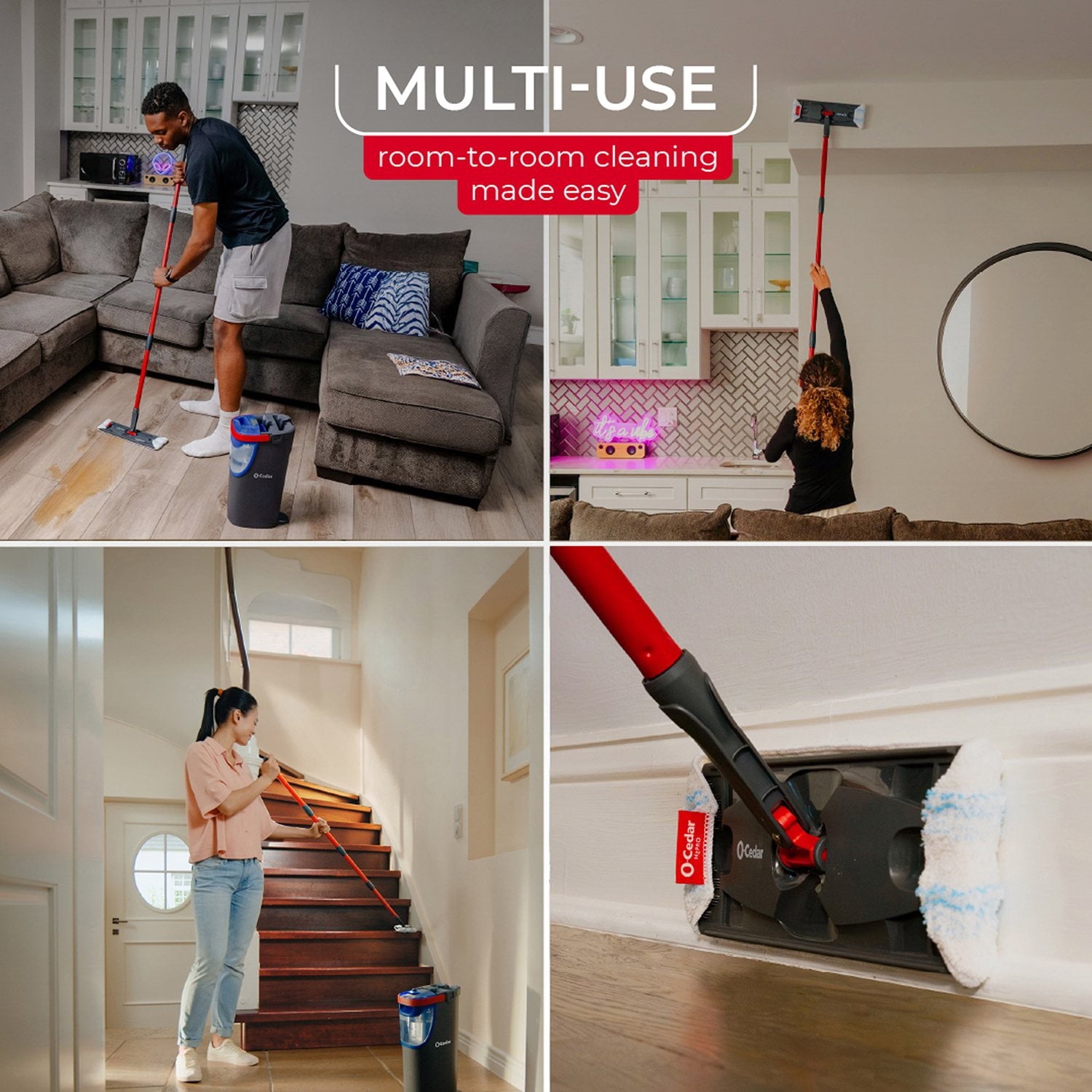 • O-Cedar H2prO Flat Mop System + 2 Mop Head Replacements