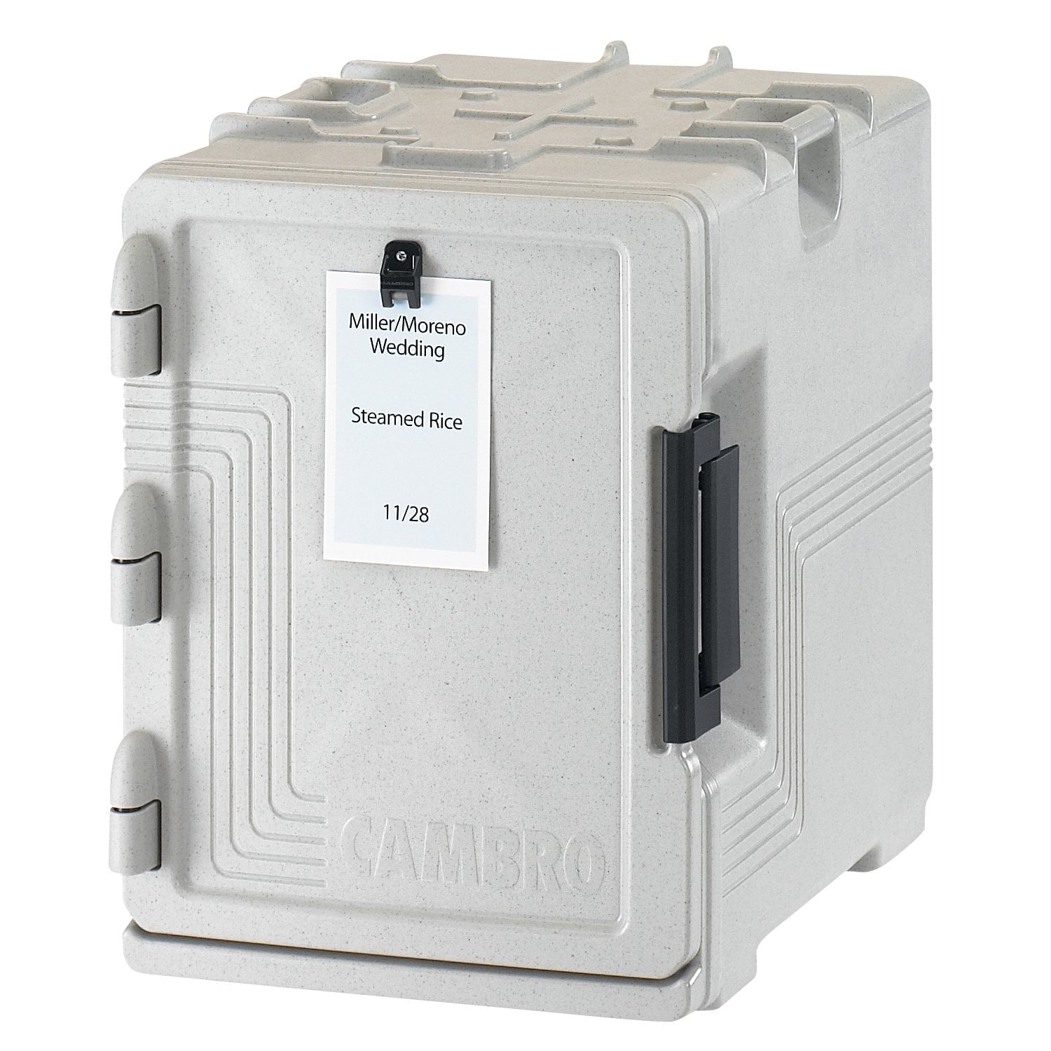 The next great addition to your transport collection is the Ultra Pan Carrier S-Series from Cambro. Thes UPCS400 ensures durability in transport and storage for the hardest working caterer. This food pan carrier features ergonomic, unbreakable molded-in handles for two-person carrying and a sturdy nylon latch for fast access. Our thick CFC-free insulation safely holds foods for 4+ hours, hot or cold, protecting food safety and freshness. No cords or chargers are needed–just place hot or cold food and go. For even longer temperature retention, consider easy-use Camchillers and Camwarmers. With a menu clip for labeling, a removable door for cleaning and storage, and a built-in vent, choose the UPCS400 for the ultimate in convenience.
