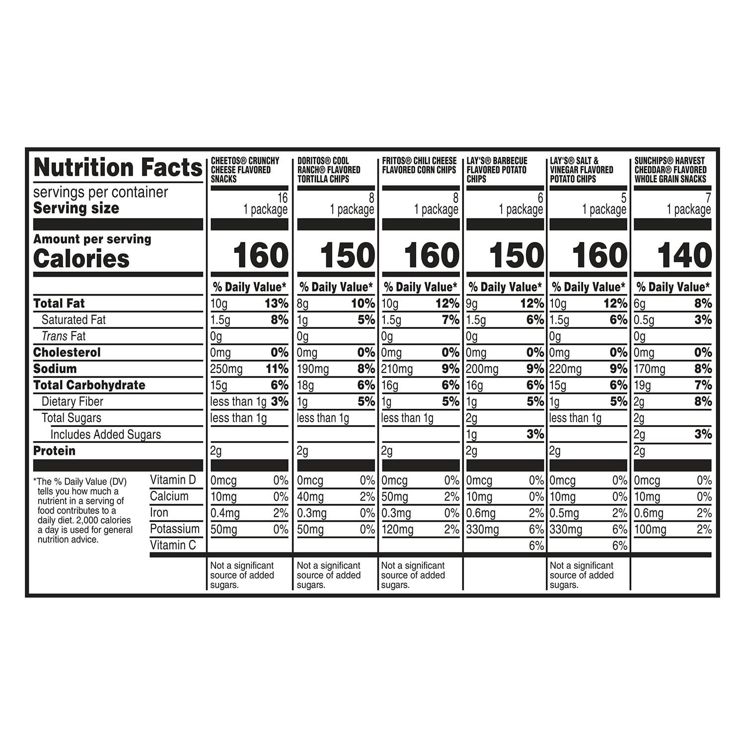 6 - Lay's BBQ,7 - SunChips5 - Lay's Salt & Vinegar16 - Cheetos8 - Doritos CR8 - Fritos
