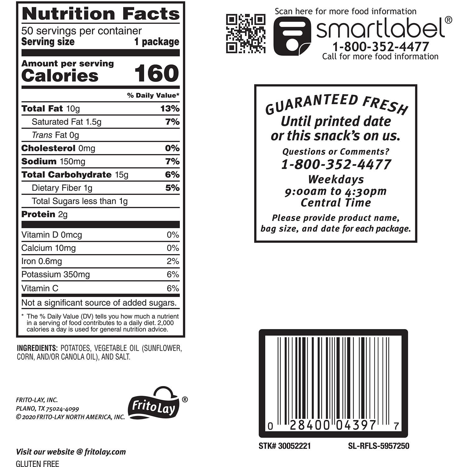 Ingredients: Potatoes, Vegetable Oil (Canola, Corn, Soybean, And/Or Sunflower Oil), And Salt.