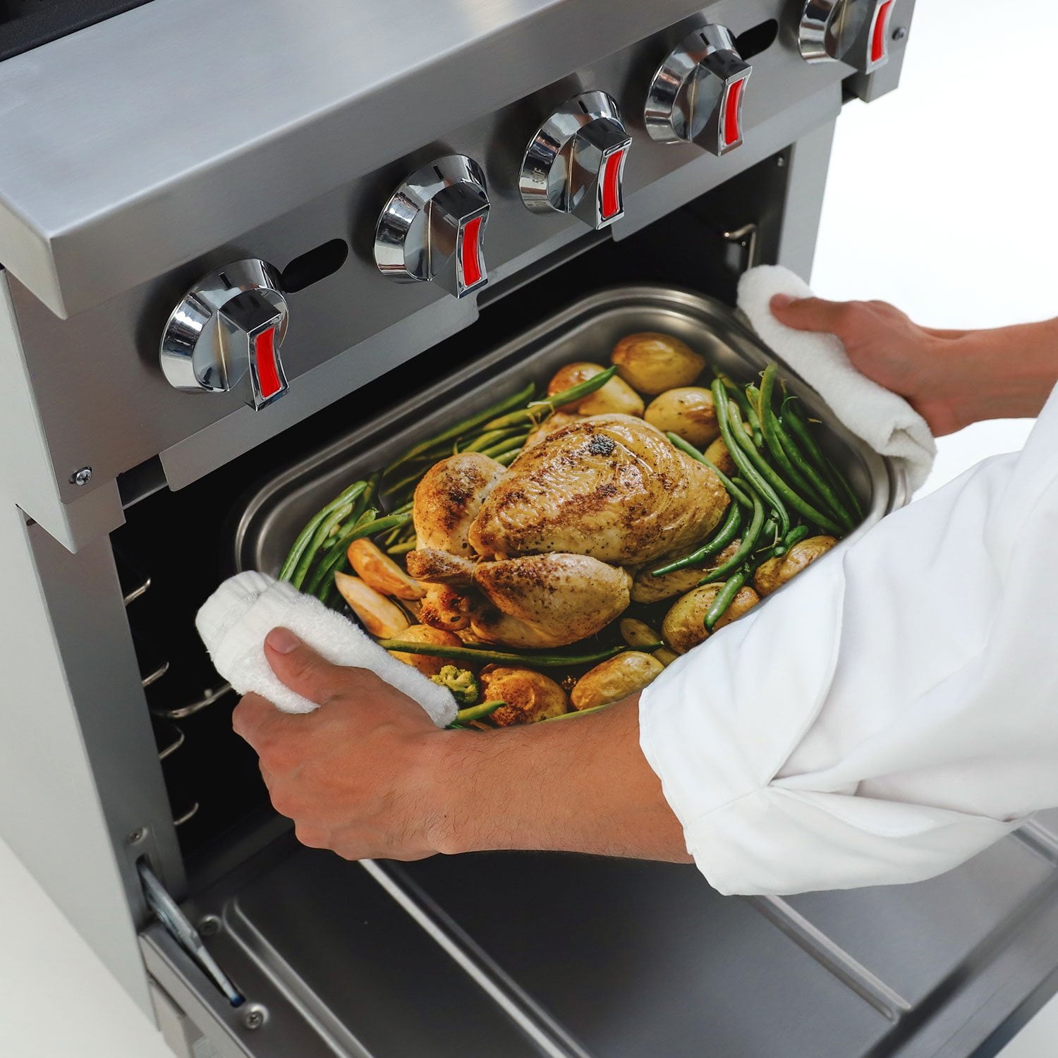 With options for 24" (4 burners) or 36" (6 burners) cooking surfaces, you can choose the perfect size for your kitchen's needs. And with the option to select either natural gas or propane, this oven can easily adapt to any gas source.