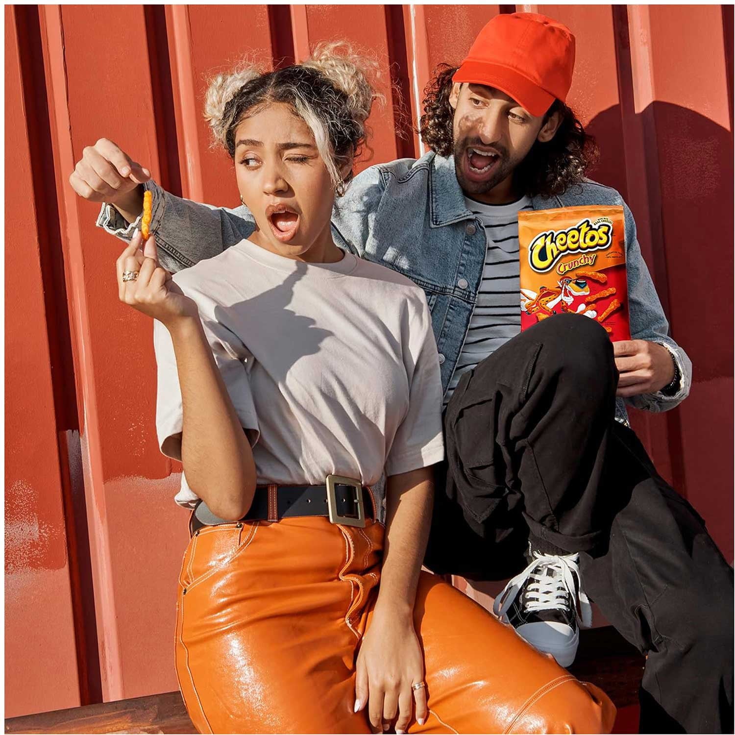 Cheetos Crunchy Cheese Flavored Snack Ingredients: Enriched Corn Meal (Corn Meal, Ferrous Sulfate, Niacin, Thiamin Mononitrate, Riboflavin, Folic Acid), Vegetable Oil (Corn, Canola, And/Or Sunflower Oil), Cheese Seasoning (Whey, Cheddar Cheese [Milk, Cheese Cultures, Salt, Enzymes], Canola Oil, Maltodextrin [Made From Corn], Natural And Artificial Flavors, Salt, Whey Protein Concentrate, Monosodium Glutamate, Lactic Acid, Citric Acid, Artificial Color [Yellow 6]), And Salt.