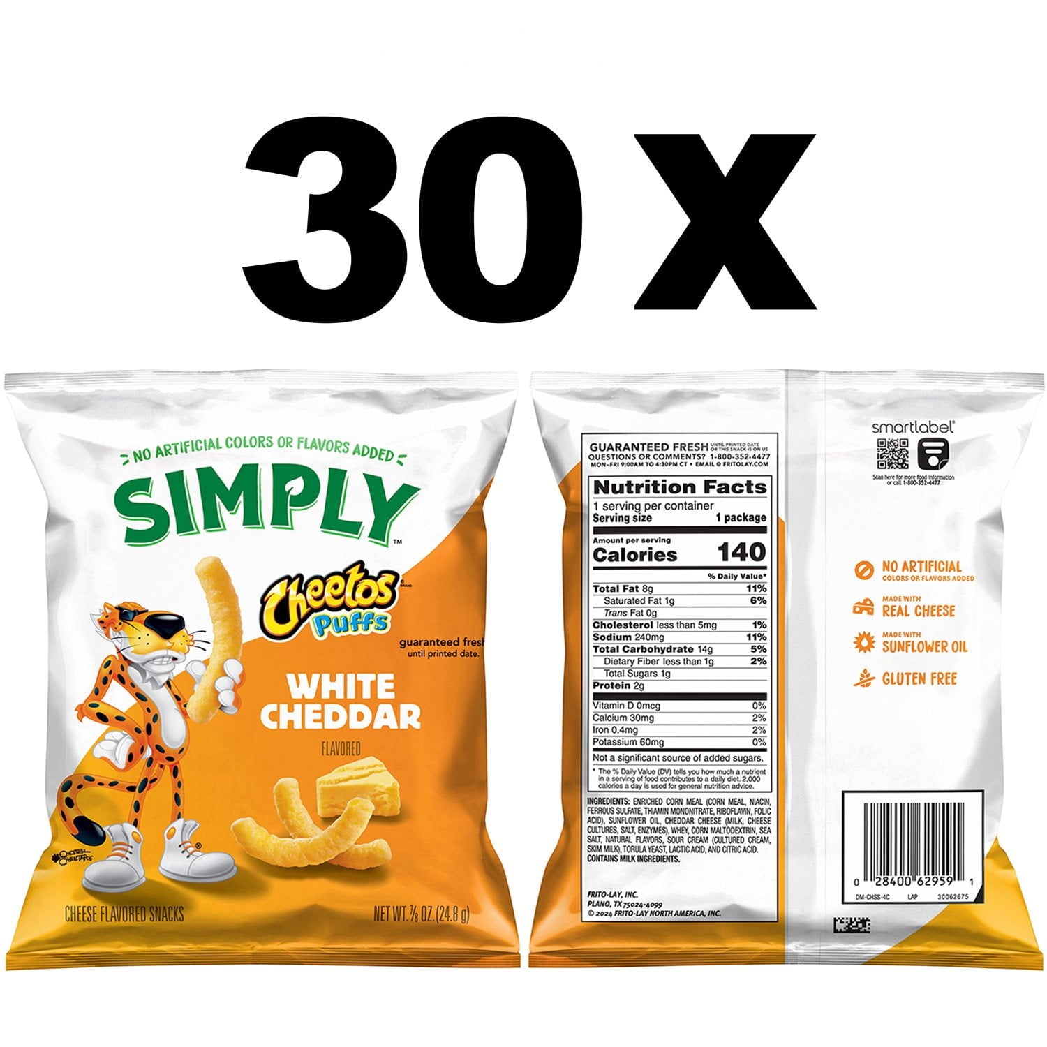 • 30 packs - 0.87 oz. each, of Simply Cheetos White Cheddar Puffs