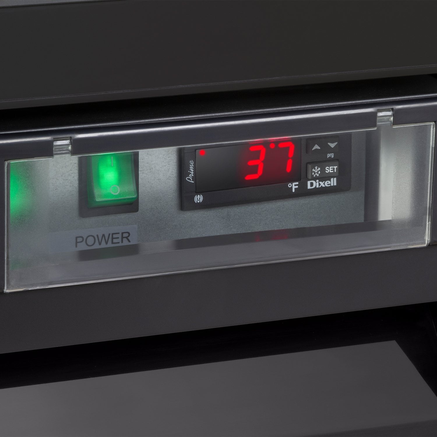 Adjustable temperature range from 32 to 40 degrees F (0 to -4 degrees C) is precisely maintained by the digital controller with LED displayHinged door is self-closing and included a magnetic gasket for a tight and efficient sealDouble pane heated glass anti-fog doors enhance energy efficiency by preventing heat transfer and minimize condensationBottom mounted compressor system is efficient and easily accessed for service and cleaningEco friendly R290 refrigerant with an Ozone Depletion Potential of 0Energy efficient foamed-in-place polyurethane insulation(4) Four heavy-duty polyethylene coated wire shelves are held in place with stainless steel shelf clips and pilastersPre-programmed automatic defrost cycle provides trouble-free storage conditionsDoor locks are standard and provide additional security and limit unauthorized accessController can be digitally locked to prevent unauthorized use or accidental access by customers(Click or tap to view and download PDF)