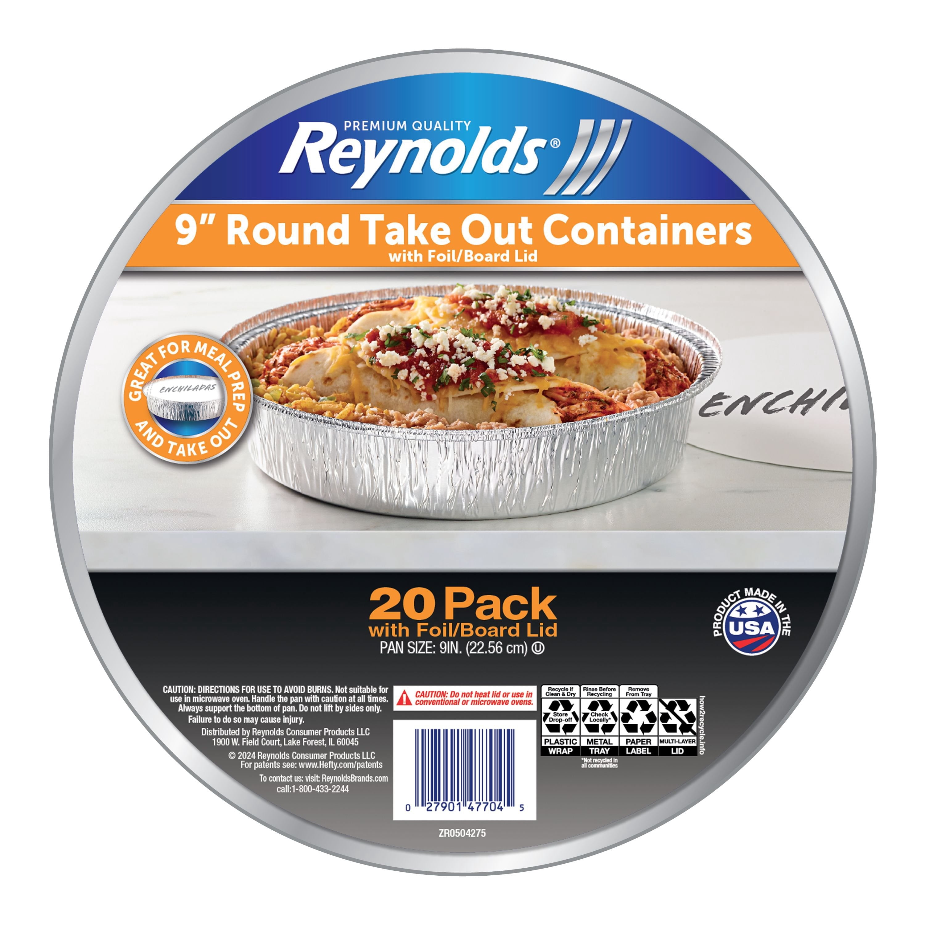 • Reynolds 9" Round Foil Take Out Containers with Lids, 20 ct.