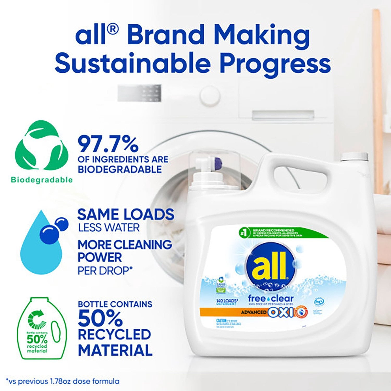 - Advanced OXI formula with boosted stainfighting power.**vs regular all® free clear liquid detergent